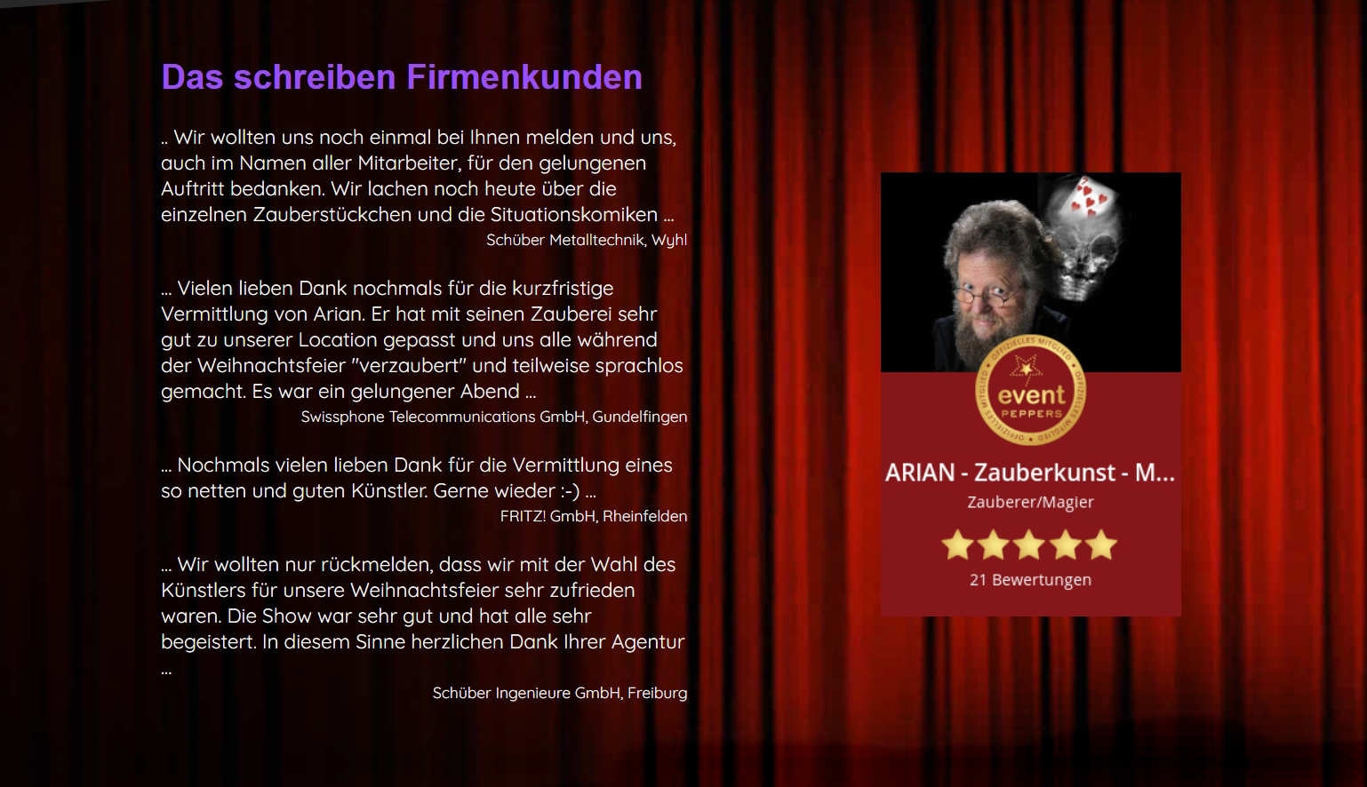 Schillerstr. 4, 79822 Titisee-Neustadt, Telefon +49 (0)76517439, arian@zauberspass.de